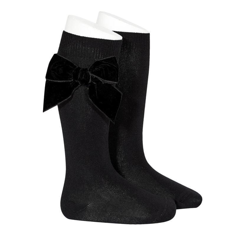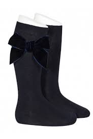 Super cute Condor Children's Socks - knee-high cotton socks with a pretty satin bow on the side of the leg. Gently elasticated so that the sock stays in place and reinforced toe and heel, super soft to the touch.