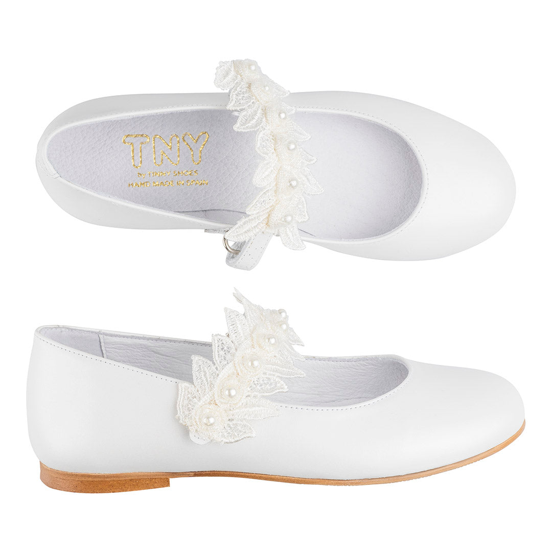 The Perla is a beautiful off-white leather shoe, designed as the perfect choice for a girl’s special ceremony. A delicate pearl appliqué accents the simple Velcro fastening across the foot, adding just the right touch of charm and elegance.