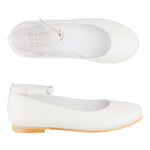 Tilly is a classic ballerina-style shoe, handcrafted in soft off-white leather and finished with a delicate ankle strap closure. Elegant yet comfortable, these timeless shoes are designed to make every step feel special.