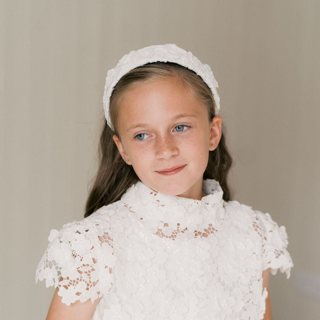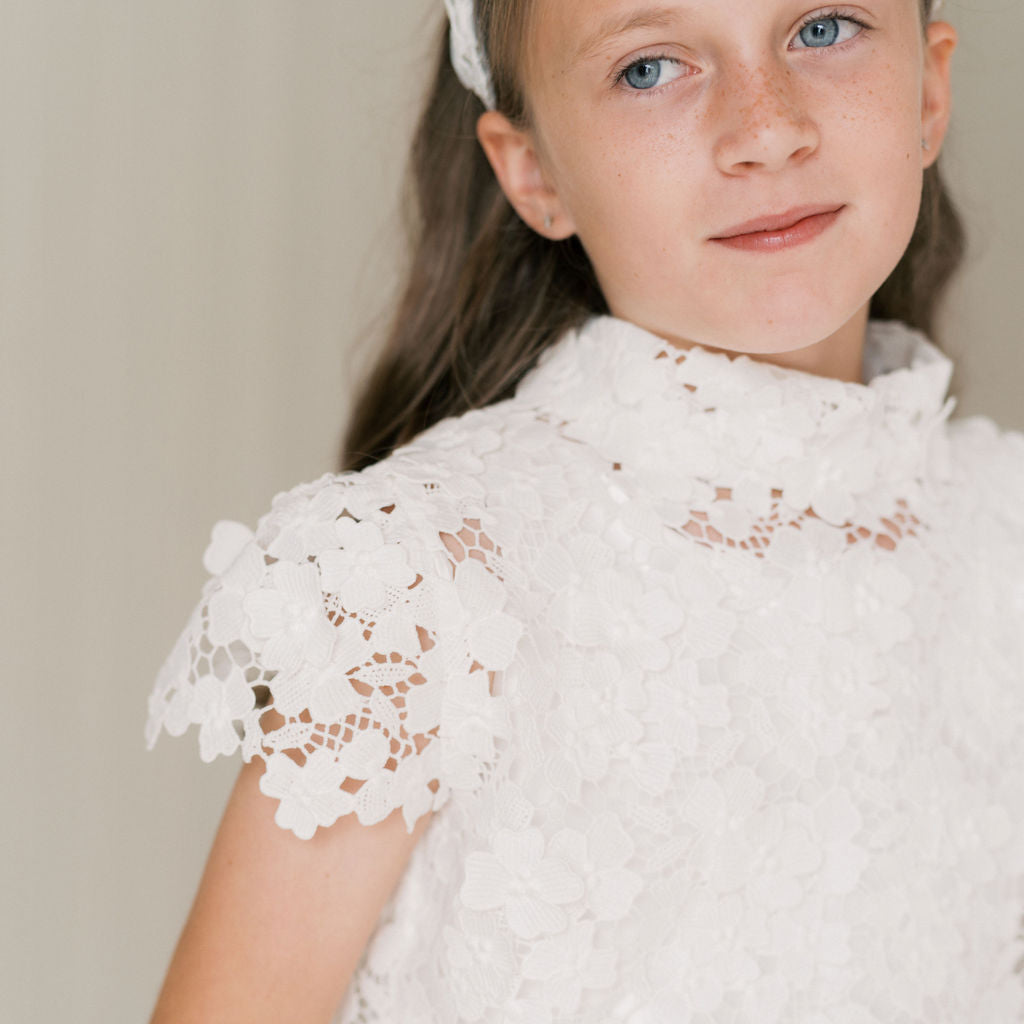 CarmenA fun, floaty dress for little girls who love a touch of va-va-voom. The Carmen Communion Dress is soft, romantic, comfortable, and made for endless twirls. Designed with a detachable lace-detailed top, it’s perfect for the ceremony and can be removed for the party—two looks in one enchanting dress.