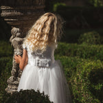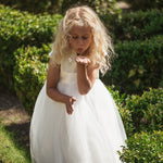 Jessica is a beautifully tailored Mikado bodice and soft cap sleeves, Jessica is every bit the “princess dress.” Its statement skirt, made from layers upon layers of soft, weightless tulle, floats effortlessly with every twirl. Finished with a chic Dior-style flat bow at the back, this gown is the perfect balance of timeless elegance and fairytale charm.